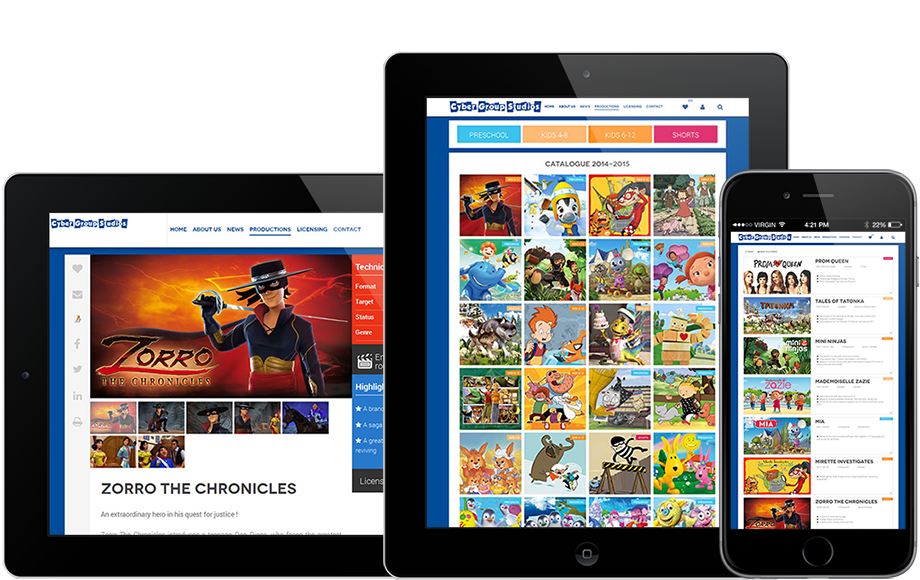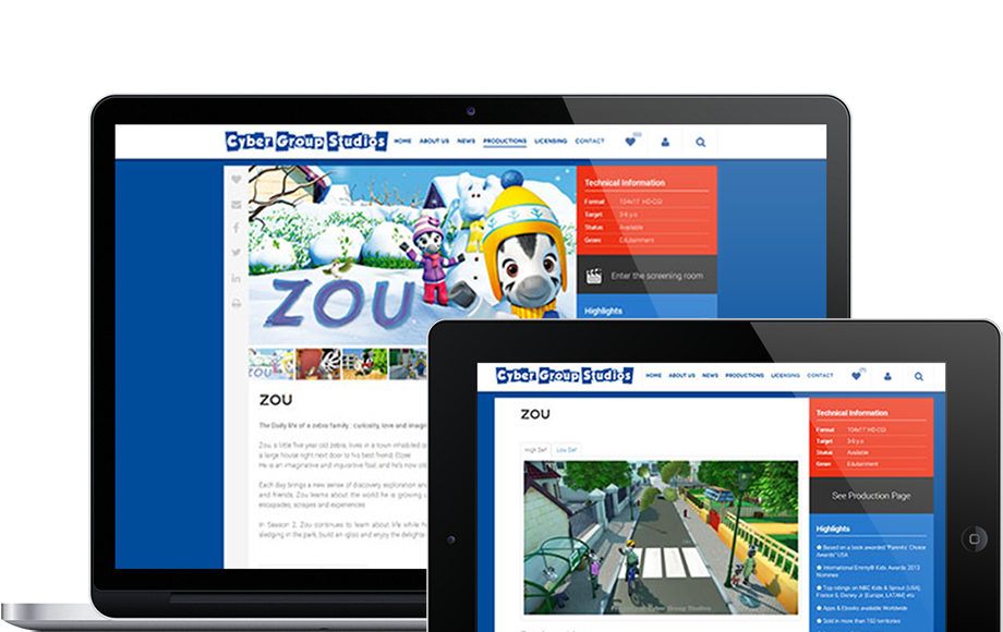 Nos productions sont équipées d'une batterie de modules : carrousel, slideshow, accordéon, galerie d'images, plan interactif, lien, popin, tooltips, éditeur HTML... avec un support natif des vidéos locales ou depuis des serveurs de streaming tel que YouTube, Vimeo...
